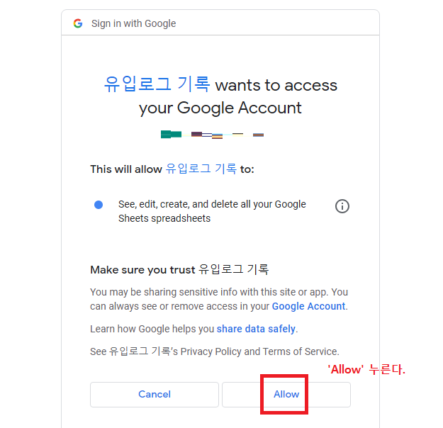 'Allow' 누른다.