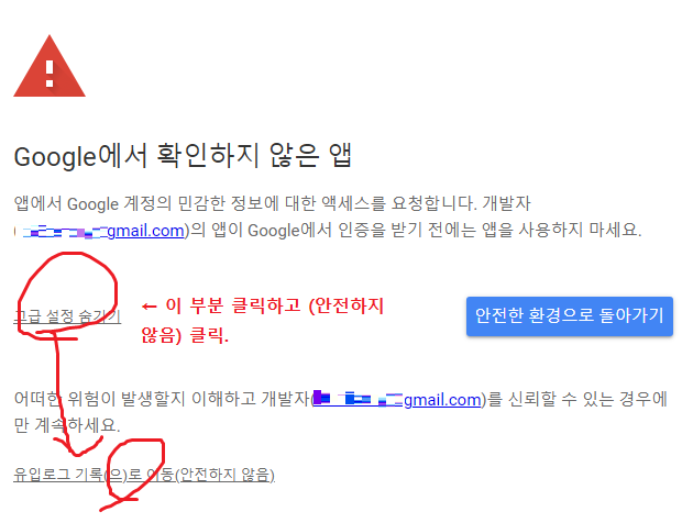 고급 설정 어쩌구 클릭한 뒤 '~(으)로 이동 (안전하지 않음)' 클릭한다.