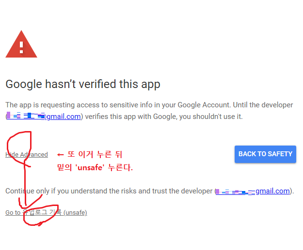 아까와 비슷한 과정이다. '~Advanced' 클릭하고 'Go to ~ (unsafe)' 클릭한다.