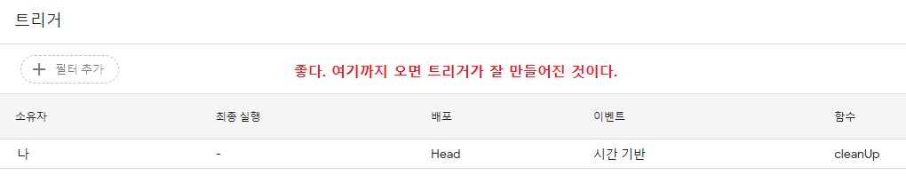 트리거 목록에 'cleanUp' 이 들어갔으면 잘 만들어진 것이다.