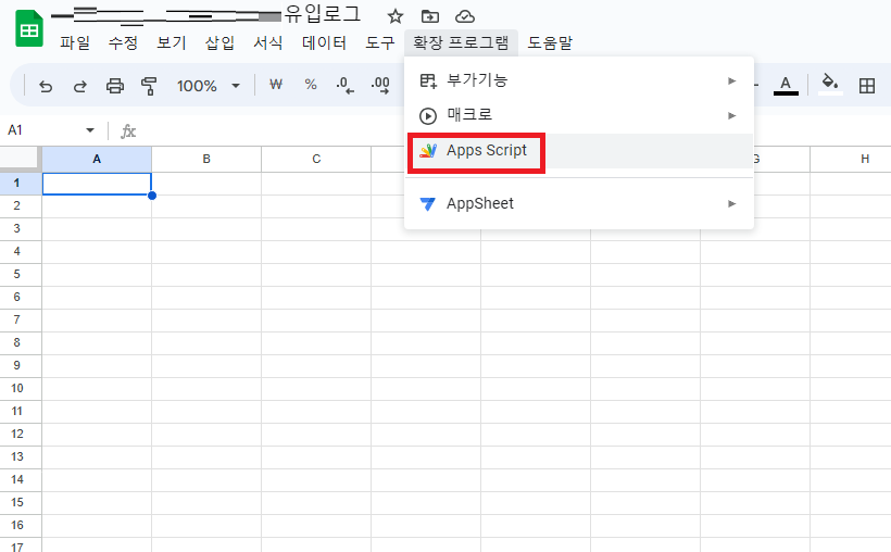 그런 다음 '확장 프로그램' - 'Apps Script' 클릭한다.