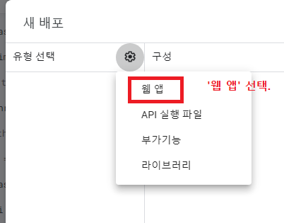 톱니바퀴 누르고 '웹 앱' 선택한다.
