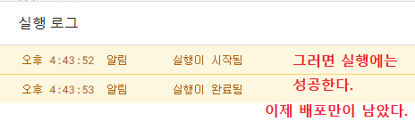 이렇게 하면 스크립트 실행에는 성공한다. 이제 배포만이 남았다.