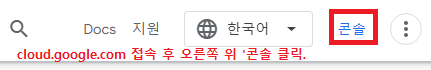 이제 구글 클라우드 플랫폼(링크)에 접속한 뒤, 오른쪽 위의 '콘솔' 을 클릭한다.