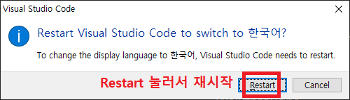 Restart를 클릭하니 프로그램이 재실행되면서 한국어로 출력되었다.