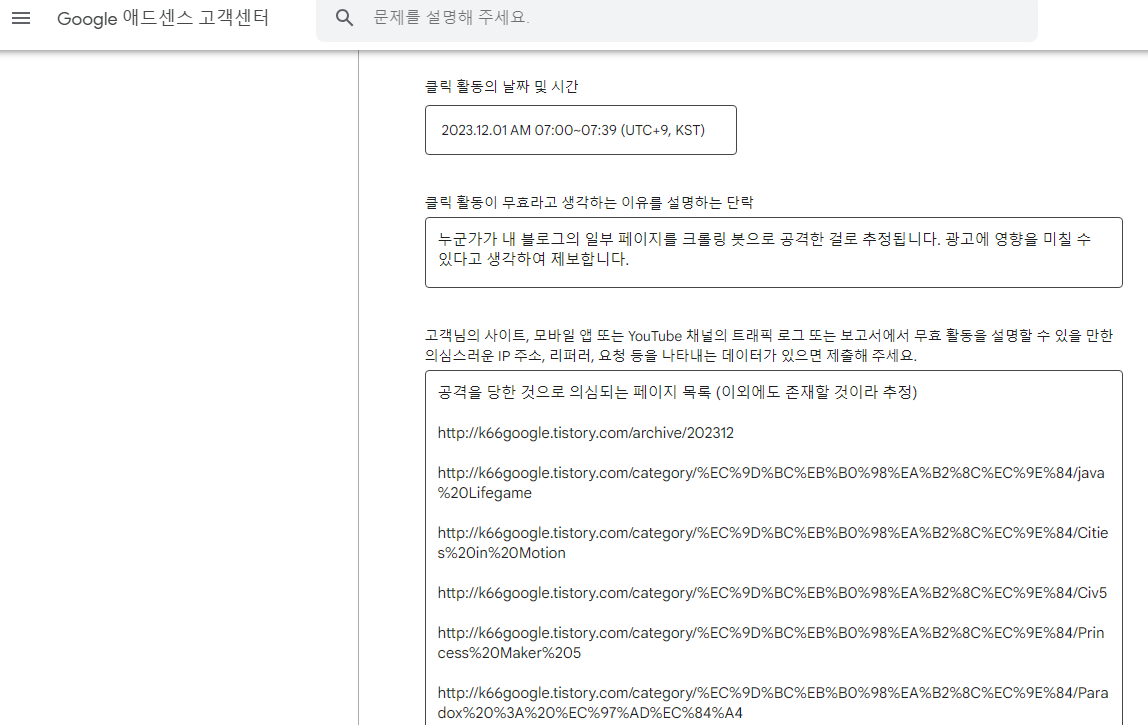 아무튼 이 일을 가지고 구글 놈들이 트집을 잡을 수도 있기 때문에, 미리 애드센스 쪽에 상황을 대충 보고하기로 하였다.
