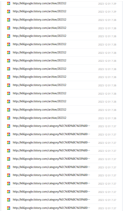 기록은 12월의 아카이브 주소와 카테고리 주소들 뿐이었다. 공교롭게도 게시물 주소는 없었다. 그리고 전부 http 프로토콜로 이 블로그에 접속하였다. 요즘은 다 https를 쓰는데, 웬 http?