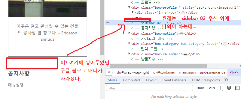 그런데 며칠 전부터 사이드바에 해당 배너가 뜨지 않았다. F12 개발자 도구로 확인해보니... 아예 배너 코드가 들어가지를 않았다. 플러그인 자체가 작동을 하지 않는 것으로 보인다. 연말까지 자잘한 사고가 벌어지는 티스토리. 대체 왜 이러는 건가?