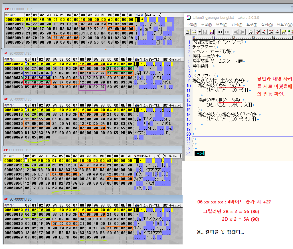 | 태합입지전5 DX 신무장 얼굴 넣기 / 이벤트 파일에 숨겨진 조건분기 코드에 관하여. (7) | 2023.01.25 |