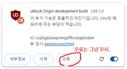 크롬 웹스토어에 있는 ublock origin Lite로 대체해도 되지만, 나는 구글놈들이 하도 괘씸해서 그냥 다시 수동 설치하기로 하였다.
