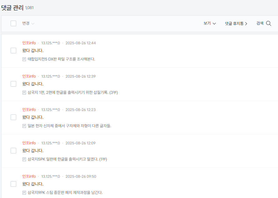 스팸 댓글로 인식되어서 대부분은 휴지통에 들어가긴 하는데... 그래도 작성자 차단까지는 일단 해주고 있다.