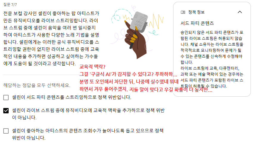 애초에 '교육적 맥락'을 '구글식 AI'가 감지할 수는 있을까? 푸하하하... 분명 또 오인해서 차단한 뒤, 나중에 실수였네 뭐네 하면서 겨우 풀어주겠지. 하지만 그런 경우보다는, 그냥 지들 말이 맞다고 우길 확률이 더 높다.