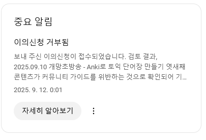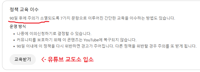 어쨌든 이의제기는 거부되었고, 남은 선택지는 유튜브 교도소에 입소해서 교육받는 것뿐이다.