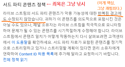 죄목이 '서드 파티 콘텐츠' 라고 해서, 나는 슈퍼챗 안 쓰고 투네이션 써서 징계를 받은 걸로 오해할 뻔했다.