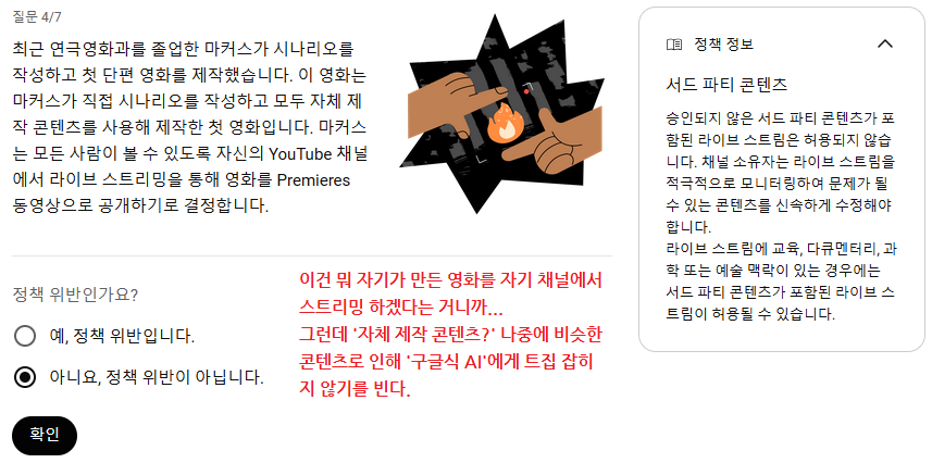 소유자가 유튜브에 무지한 자라면 콘텐츠 ID 등록에 미숙해서 트러블이 날지도 모른다. 화이트리스트에 안 넣어줬다든가... 그럴 경우 구글식 AI로 선제차단 당하고 나중에 소명 제출해야 할 수도 있겠다.