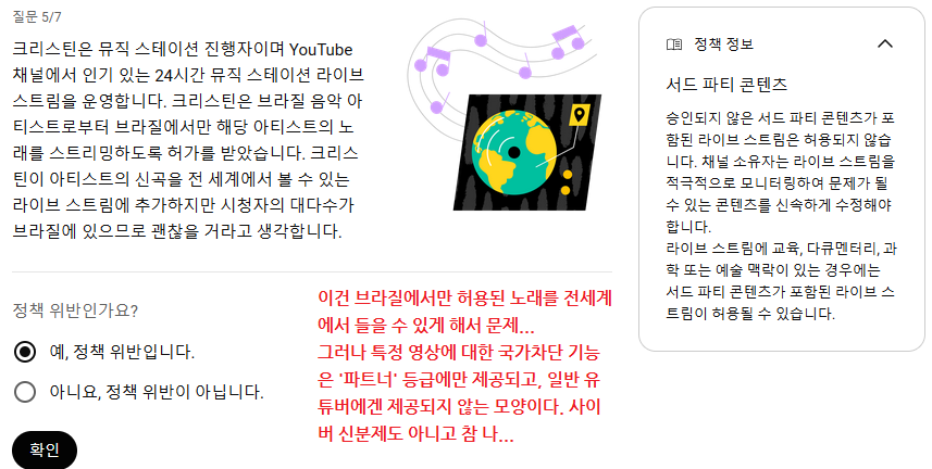 하지만 영상에 대한 국가차단 기능은 '파트너' 등급의 유튜버에게만 제공되는 모양이다.