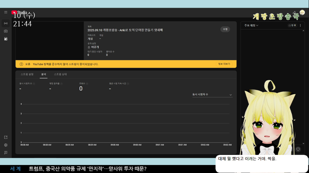 이번에는 내가 무슨 커뮤니티 가이드를 위반했다면서 유튜브 쪽 스트리밍이 강제로 중지되고 말았다.